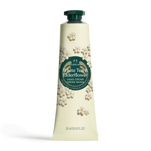 Lëmoni duart me kremin tonë të duarve me çaj të bardhë dhe lule shtogu.