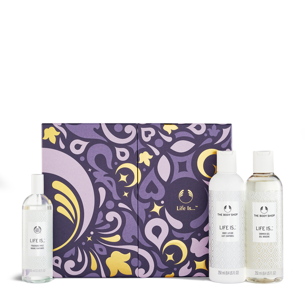 Përjetoni aromën e gëzueshme dhe vezulluese të Life Is, një aromë rrezatuese që energjizon shqisat dhe përkëdhel lëkurën. Nga një xhel dushi aromatik te locioni ushqyes i trupit dhe një sprej që zgjat, ky set i sjell kënaqësi të përditshme rutinës suaj. Perfekt për këdo që i pëlqen aromat e gjalla dhe ngritëse dhe përkëdheljet e menduara.